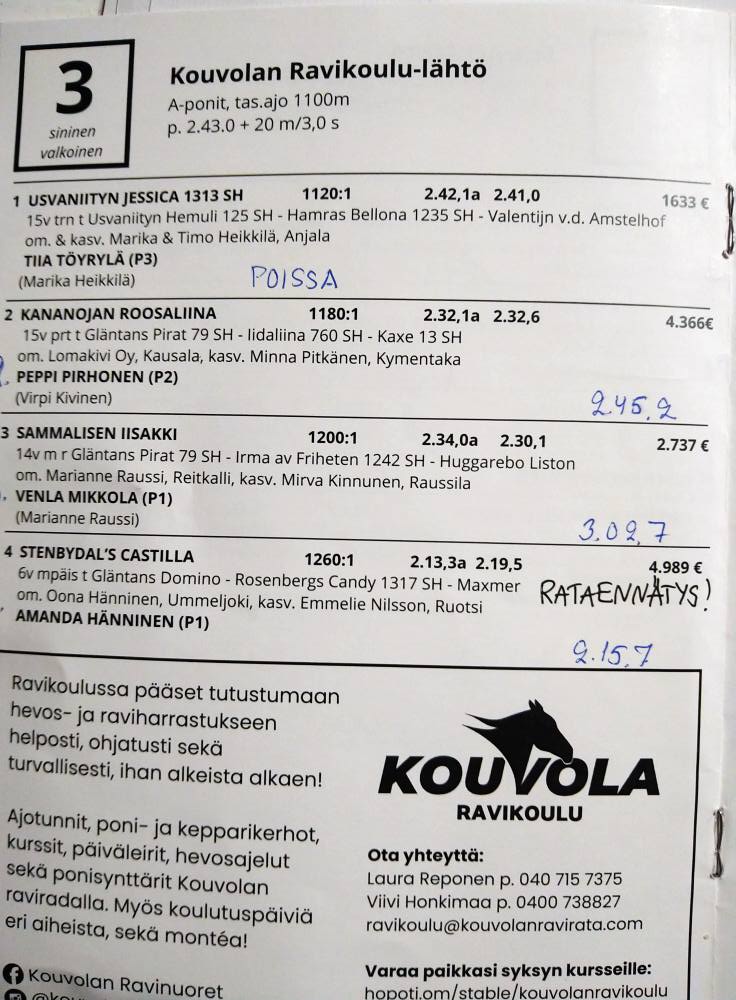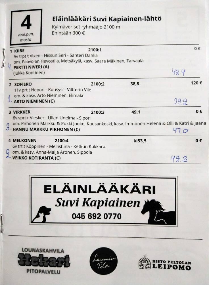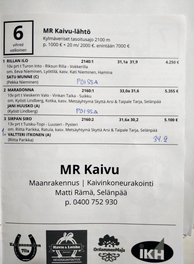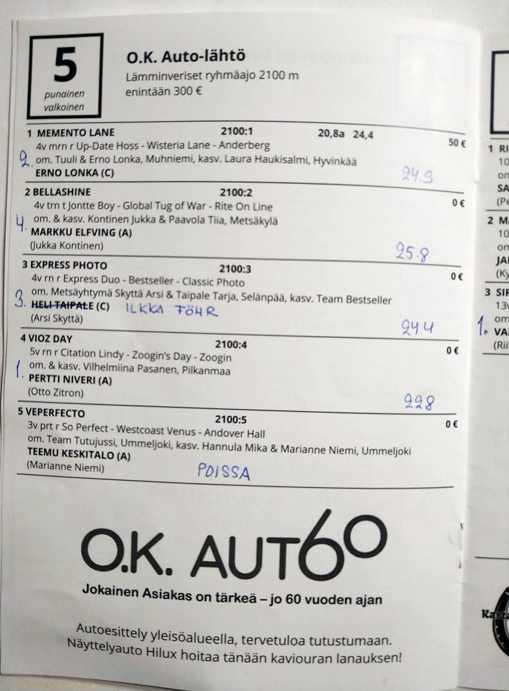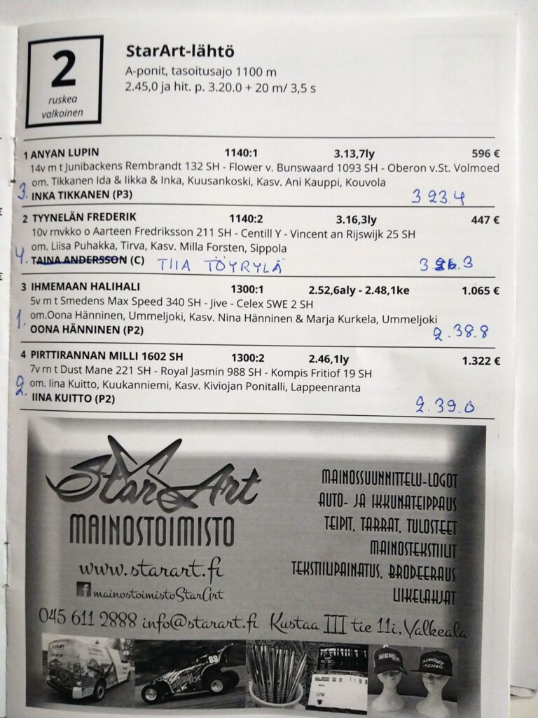 Keppihevosjuoksukilpailut ennen ravien alkua n. klo 18.00